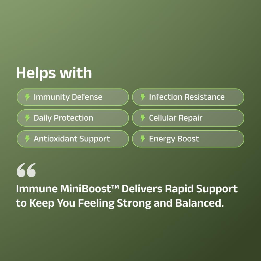 Immune MiniBoost™ is designed to turn that run-down vibe, early seasonal discomfort, heavy-week exhaustion, and travel fatigue into steady daily support, a budget-smart option you can repeat without overthinking the cost.