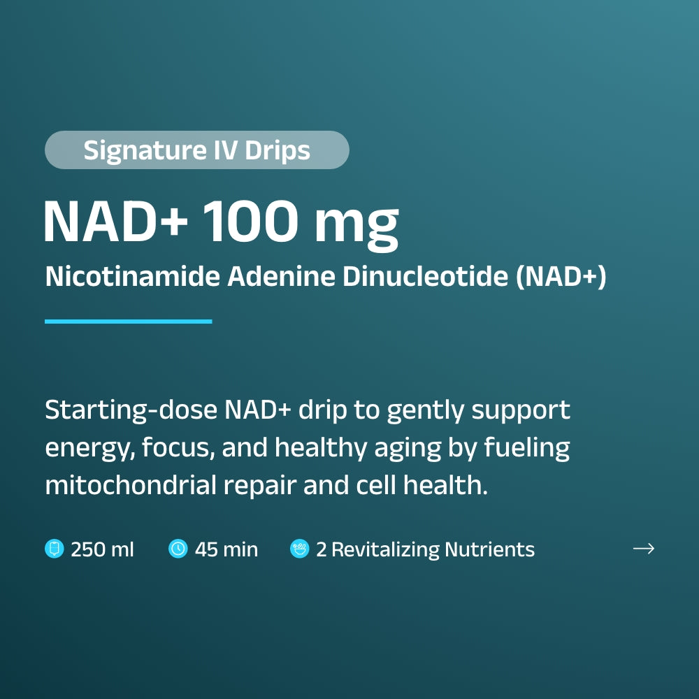 NAD+ levels naturally decline with age, stress, poor sleep, and high-performance lifestyles, leading to fatigue, mental fog, and reduced cellular efficiency. NAD+ Signature Booster™ is a medically guided IV therapy designed to restore NAD+ levels and support cellular energy production at a foundational and progressive level.